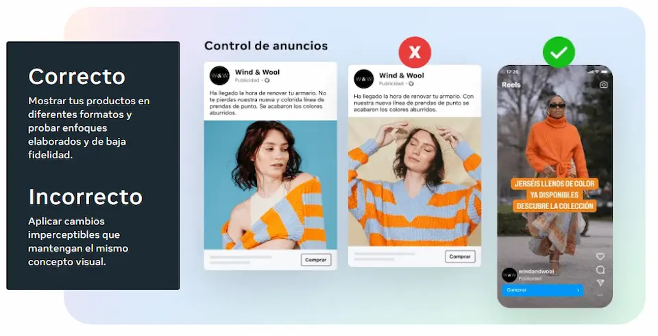 - Iteración creativa: exprimir lo que ya funciona, creando versiones parecidas de tu mejor anuncio.