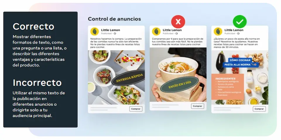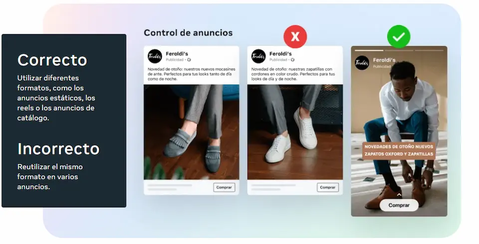 Diversidad creativa = tener muchos anuncios que sean realmente distintos entre sí:
